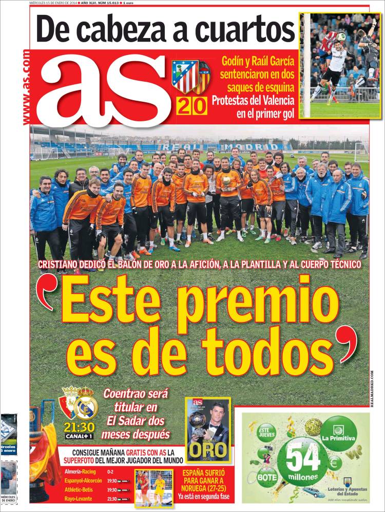 L'Equipe 15.01.14 A Bola 15.01.14 Tuttosport 15.01.14 Gazzetta 15.01.14 Corriere 15.01.14 EL 9 15.01.14 Super Deporte 15.01.14 Mundo 15.01.14 Sport 15.01.14 As 15.01.14 Marca 15.01.14