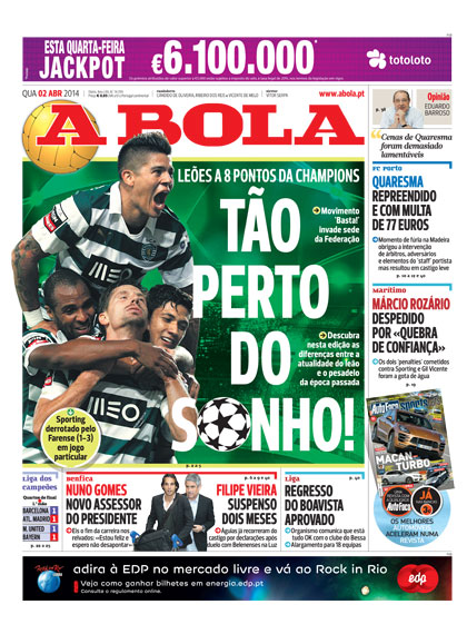 A Bola 02.04.14 As 02.04.14 Corriere 02.04.14 EL 9 02.04.14 Gazzetta 02.04.14 L'Equipe 02.04.14 Marca 02.04.14 Mirror Sport 02.04.14 Mundo 02.04.14 Sport 02.04.14 Sun Sport 02.04.14 Tuttosport 02.04.14