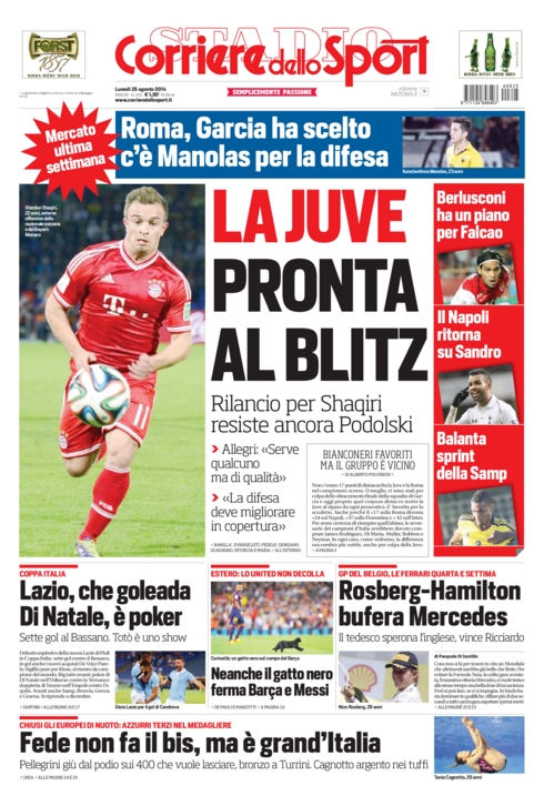 A Bola 25.08.14 AS 25.08.14 Corriere 25.08.14 Daily Sport 25.08.14 Gazzetta 25.08.14 L'Equipe 25.08.14 Marca 25.08.14 Sport 25.08.14 Star Sport 25.08.14 Sun Sport 25.08.14 Tuttosport 25.08.14