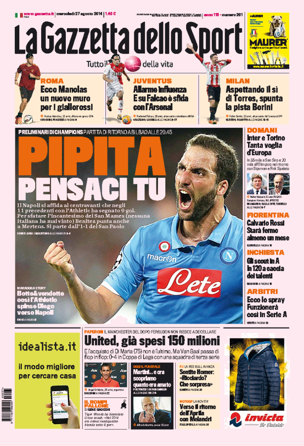 A Bola 27.08.14 AS 27.08.14 Corriere 27.08.14 Daily Sport 27.08.14 Gazzetta 27.08.14 L'Equipe 27.08.14 L'Esportiu 27.08.14 Marca 27.08.14 Mirror Sport 27.08.14 Sport 27.08.14 Star Sport 27.08.14 Sun Sport 27.08.14 Tuttosport 27.08.14